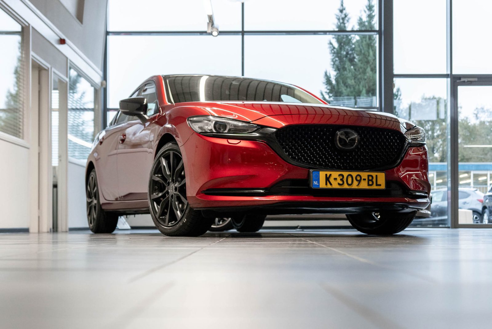 - De Mazda 6 met de custom editie maakten we hem net iets unieker. De grill is in hoogglans zwart, evenals het dak, de spiegels en de raamlijsten. Een mooi contrast met de rode kleur van de auto!